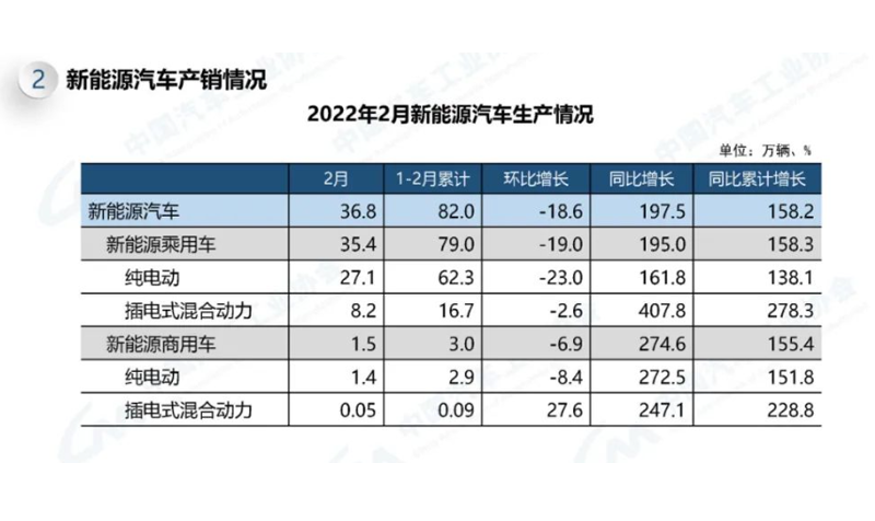 In February 2022, the total number of new energy vehicles was 368000 (271000 pure electric vehicles, 82000 plug-in hybrid vehicles) ...