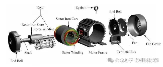 感应电动机又称异步电动机,是一种交流电动机。根据电源相数不同,可分为单相和三相。感应电动机的主要结构由定子和转子两部分组成。此外,还有端盖、轴承、电机架等部件。