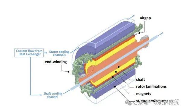 液冷系统通常采用水冷(含乙二醇溶液)、油冷或其他冷却液,冷却方式包括冷却套管、内置冷却通道、转子或定子直接冷却等。